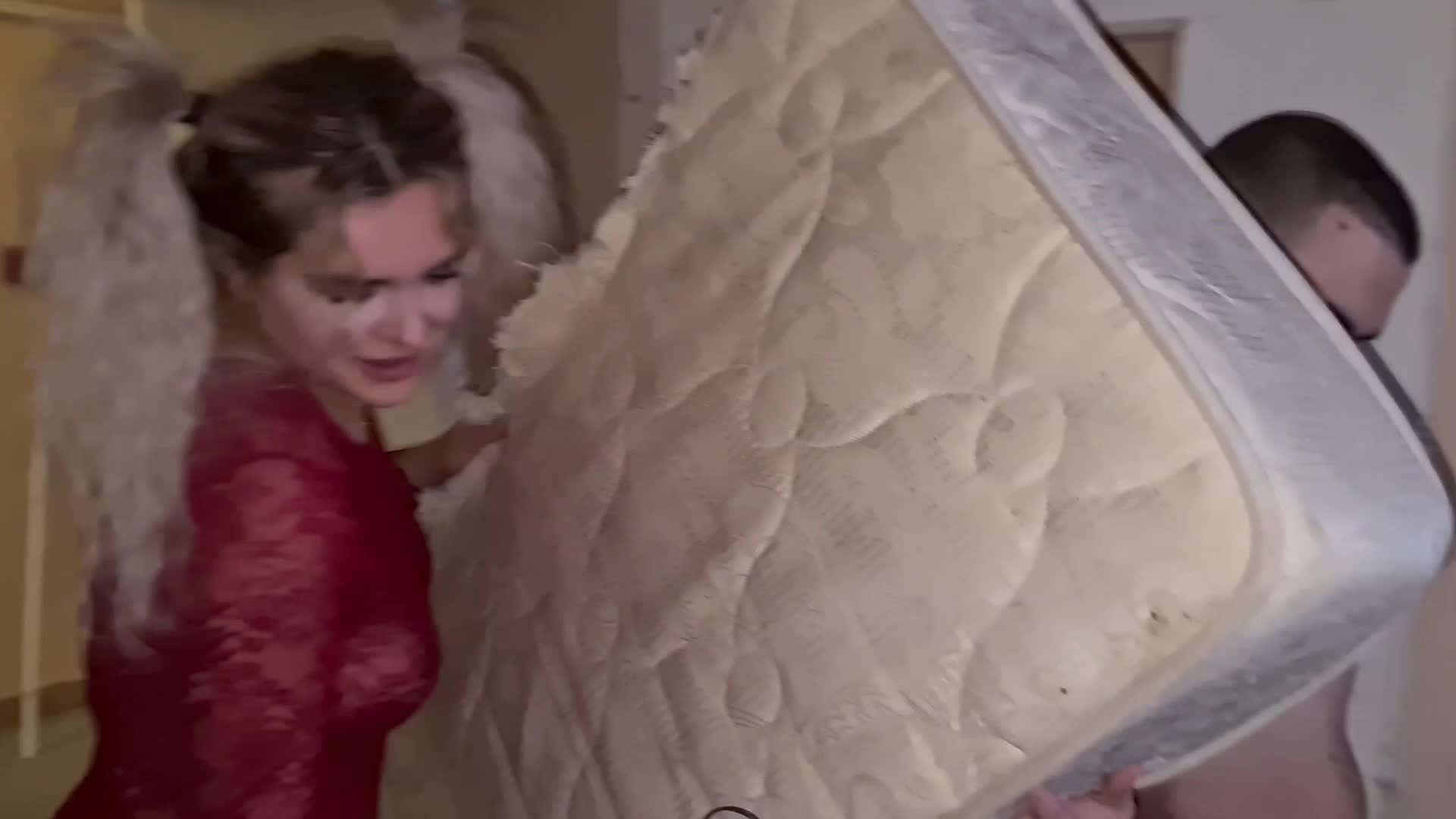 В этот раз он жарит тёлку на старом разваленом матрассе