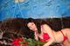 Брюнетка продолжает позировать на фоне подаренных цветов.