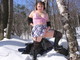 Знойная, горячая женщина устраивает стриптиз в снежном лесу