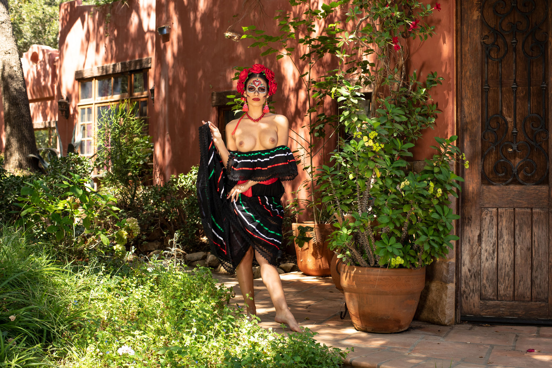 почти голая девушка в стиле мексиканских мертвяков