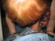 рыжая милашка отсасывает конец у мужика.