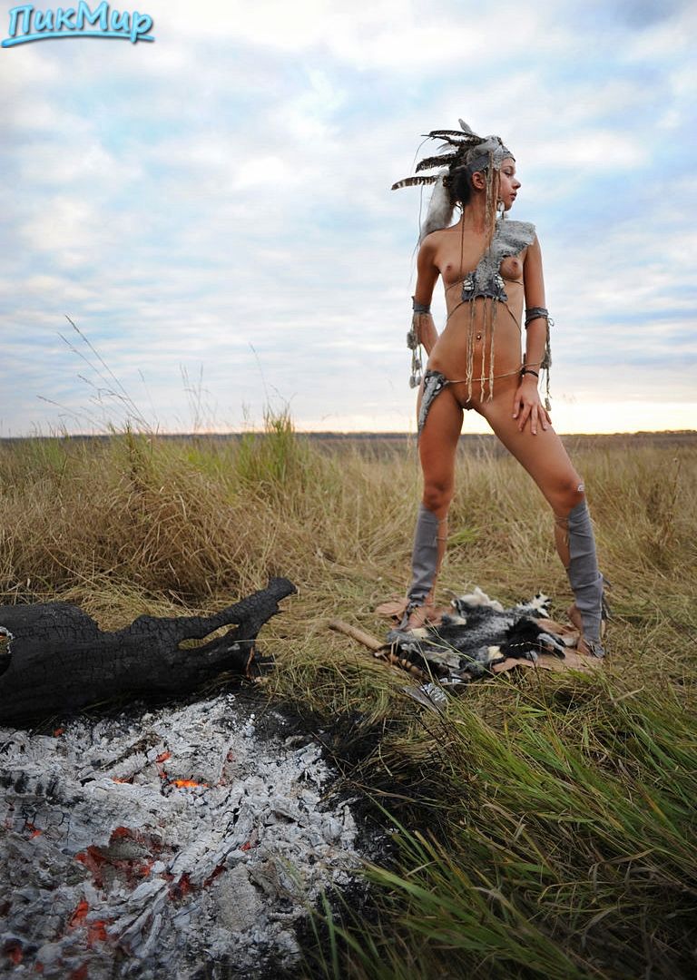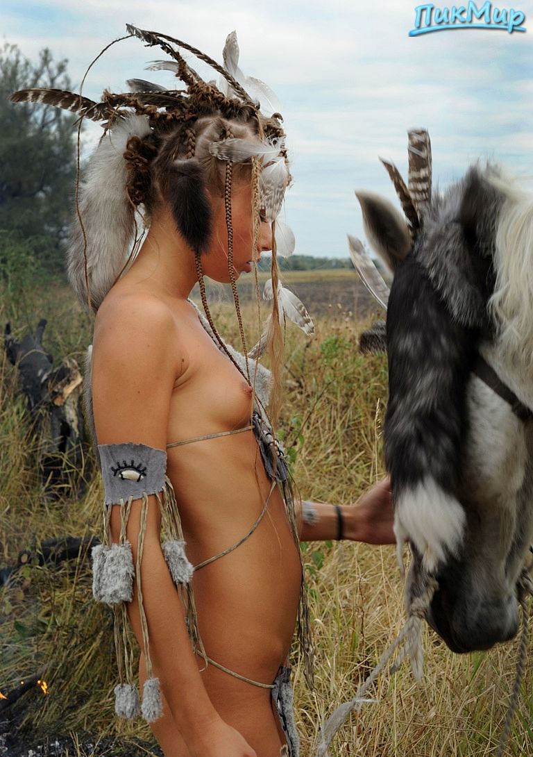 Молодая худенькая индианка гуляла обнаженной со своей лошадью.