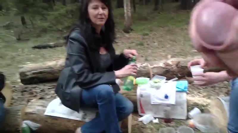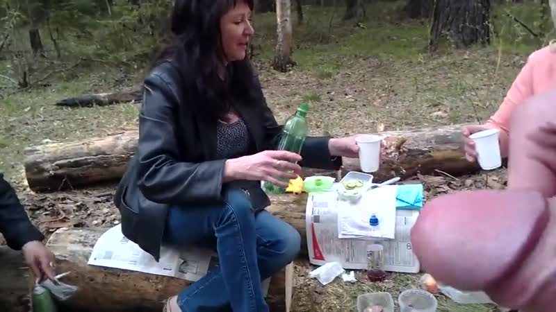 паренёк мастурбирует в лесочке перед зрелыми дамами!