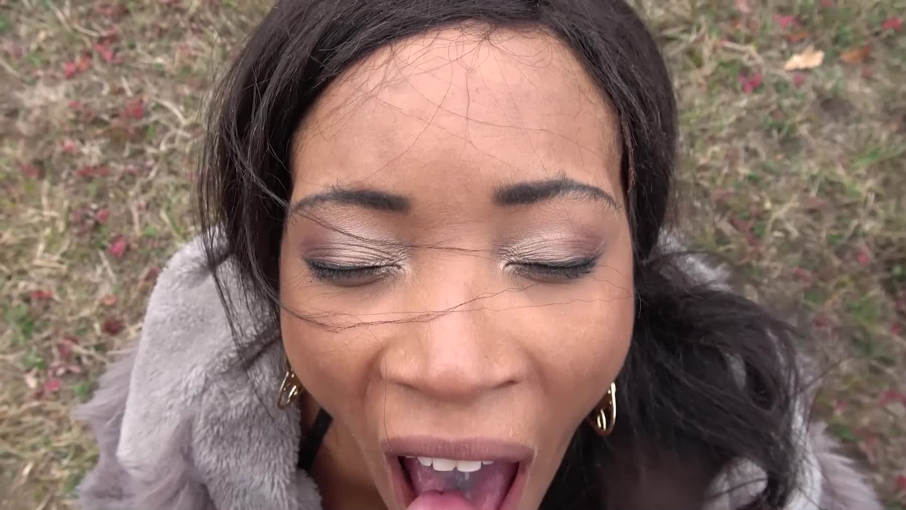 негритянка отсосала белый член и получила сперму в рот, но она ее выплюнула