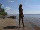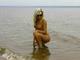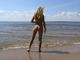 Совсем голенькая красотка на безлюдном пляже
