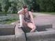 Уже не молодая , но ещё привлекательная мадам раздевается и оголяет части тела в городе.