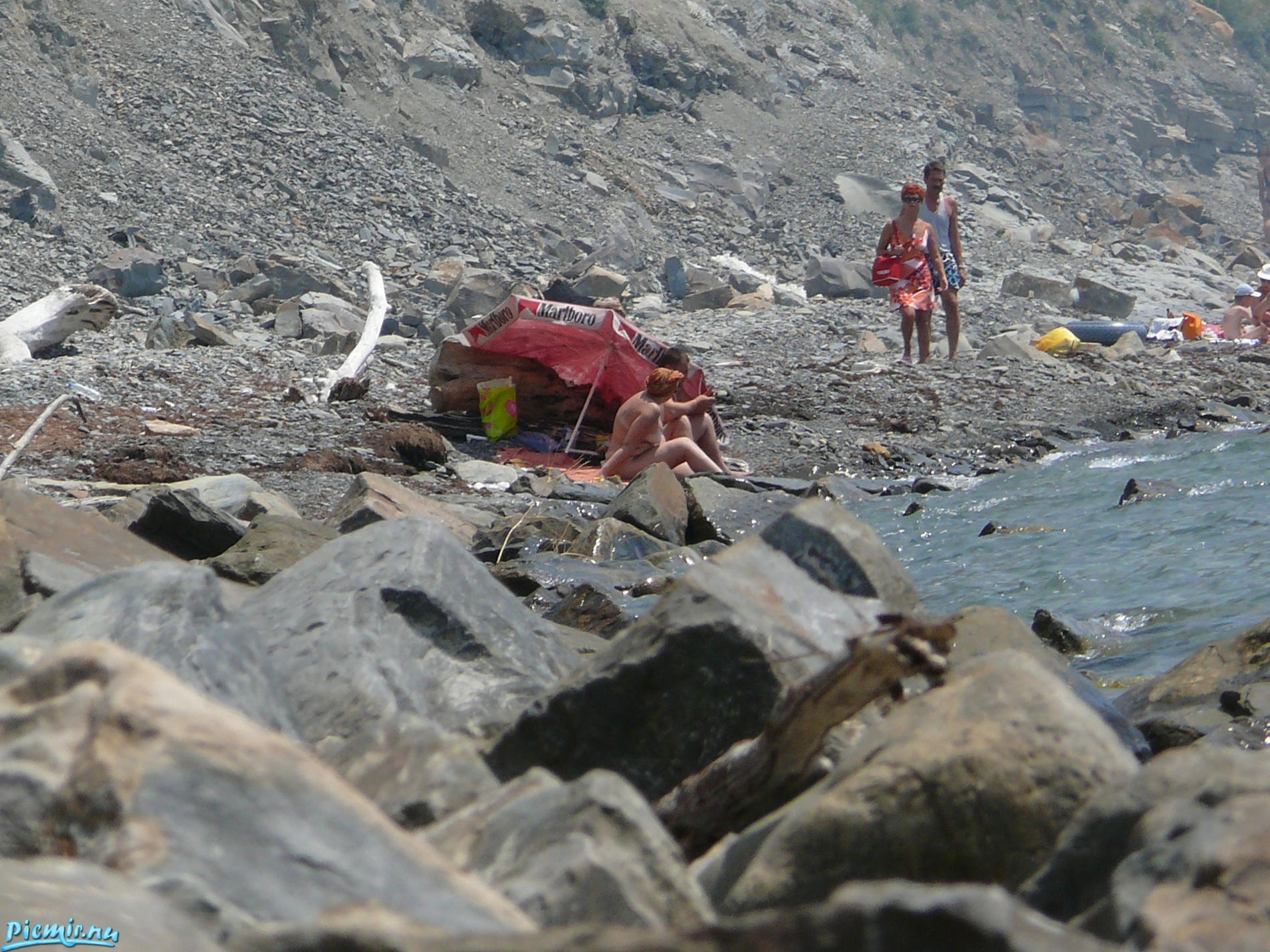 Нечего смотреть совсем. Три колеки на пляже и в основном мужики. Да и далеко и мелко получается. Ничего толком не видно.