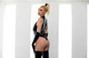 сексуальная блондинка позирует в чёрном латексе