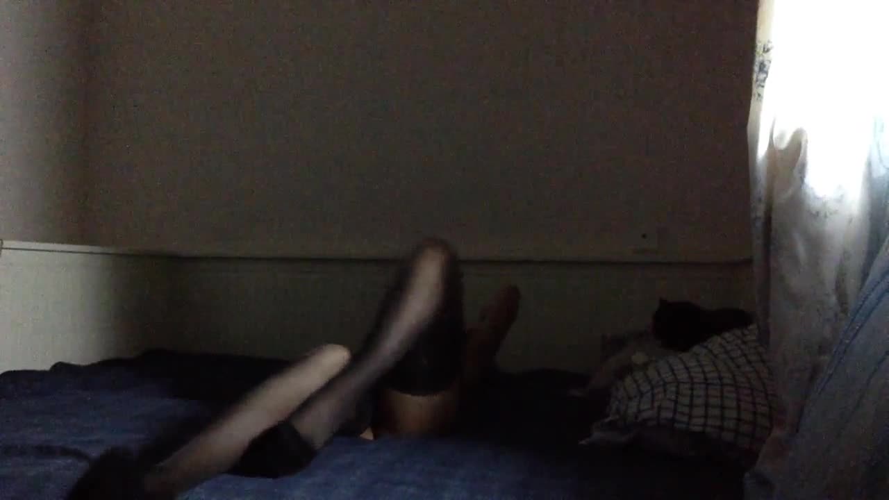 Возбуждающе Ярослава в чулочках на кровати мастурбирует!