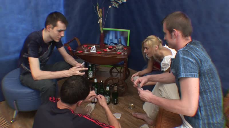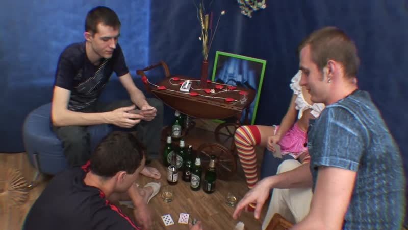 девочка с ребятами выпивали и решили перекинуться в карты на раздевание, закончилось все сексом!