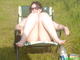 девушка широко раздвинула ноги в кресле на природе