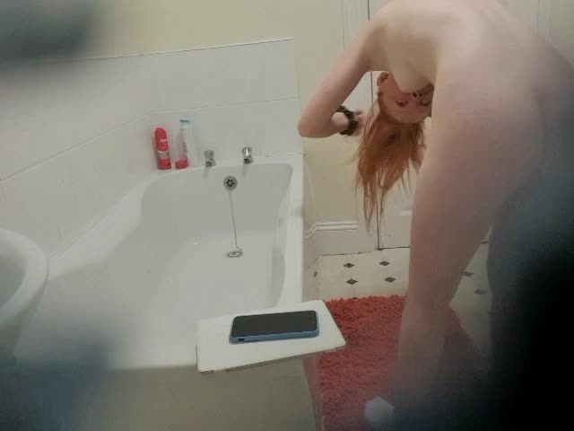 рыжая деваха попала на скрытую камеру когда была в ваной комнате