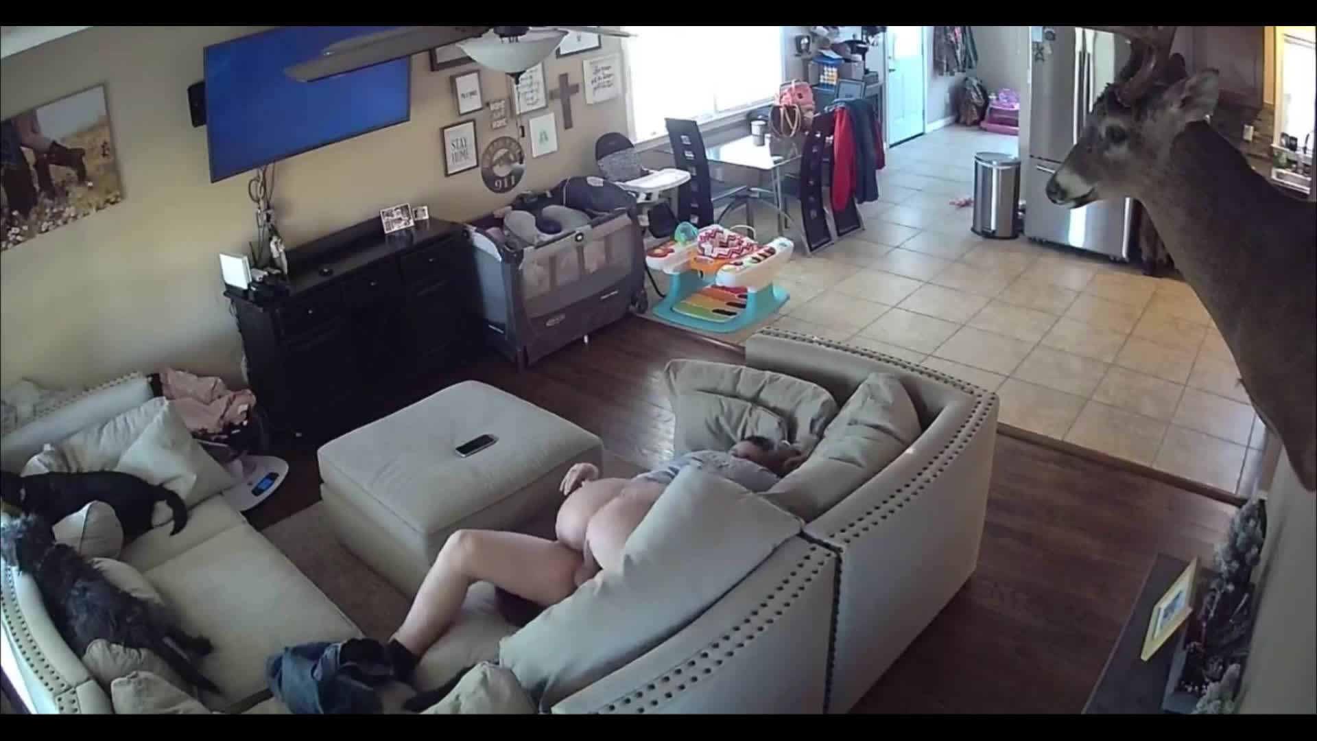Парочка шпилится под домашней камерой