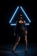 сексуальная голая девушка в чёрных чулках на чёрном фоне
