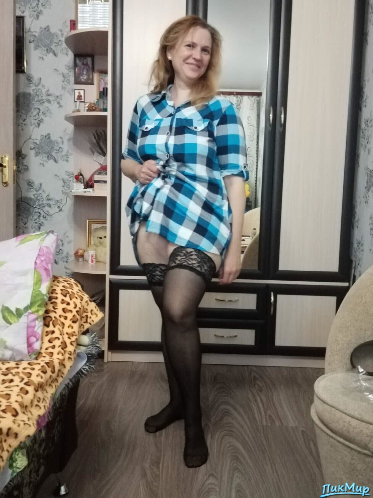 Сексуальной выглядит она в этих чёрных чулках и в этой клетчатой рубашке!