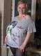 Дама с большим бюстом жеманничает со своей футболкой...