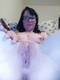 Привлекательна влажная вульва у этой брюнетки с тату и в очках!