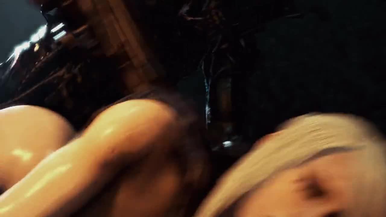 Чужой нападает на космонавкой с большими сиськами