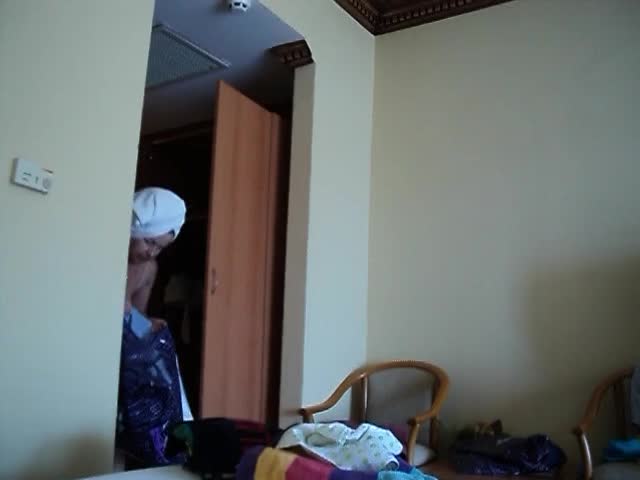 Обычно это делают заранее, но она видимо специально дала Вам время обнажённой снять её на камеру после принятия душа!