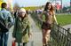 Люди в куртках, а она с голыми сиськами.