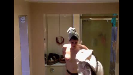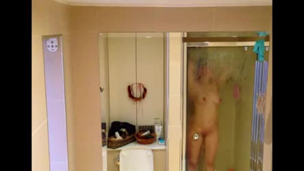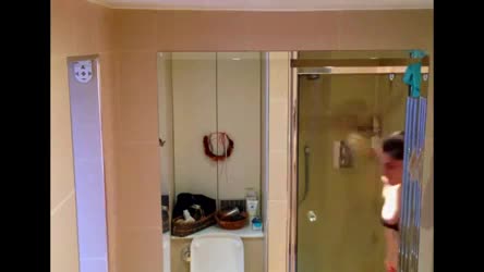 Молодца принимает душ не подозревая о камере