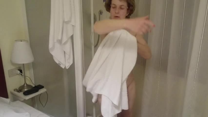 Как удобно, сначала осмотреть красотку в душе и потом наблюдать её выход голой прямо в кровать