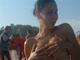 Паренек фоткается с двумя девченками топлес во время отдыха.