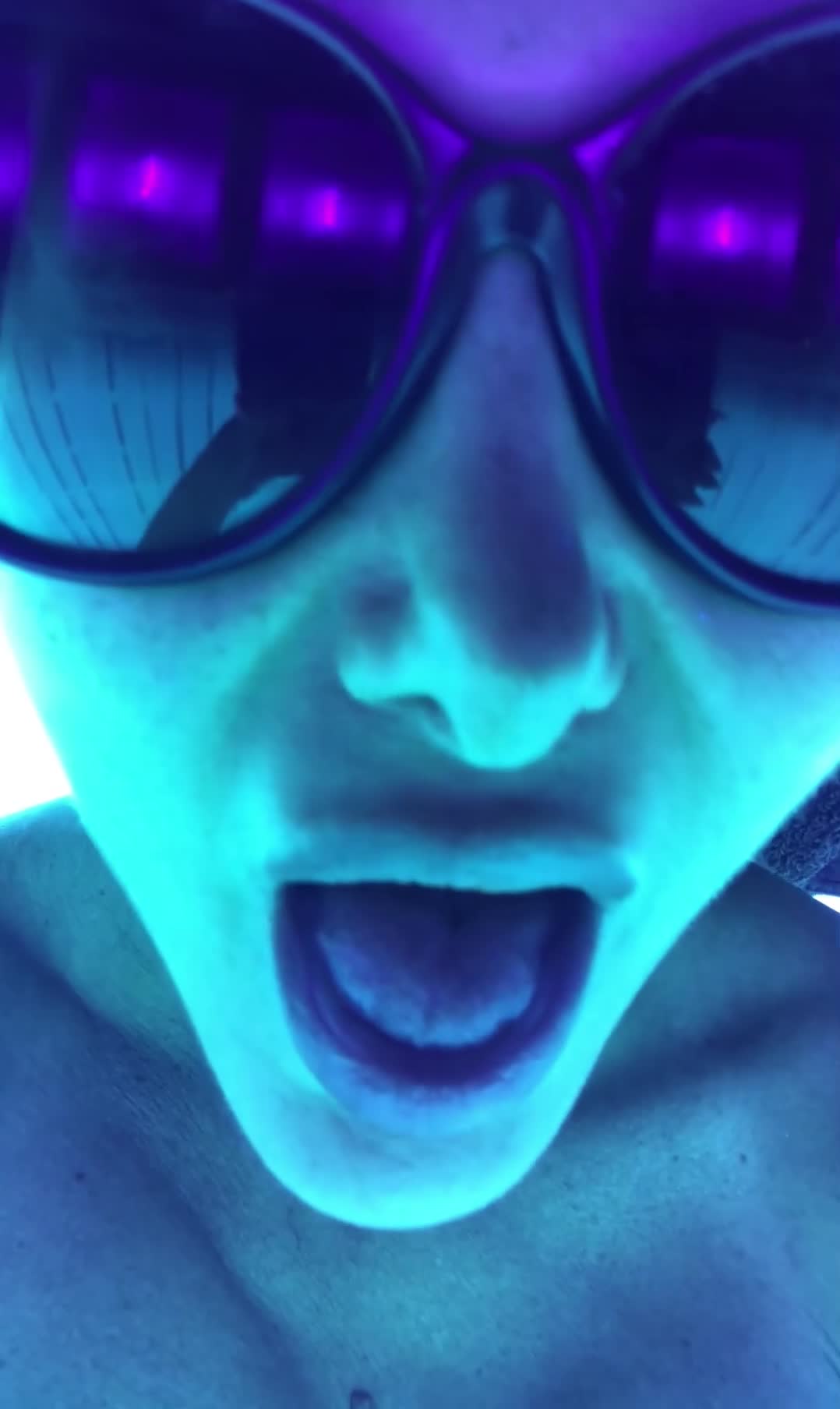 Сисястая мадама даже находясь в солярии не перестаёт своим любимым делом заниматься!