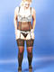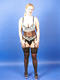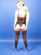 симпатичная дама в сексуальном белье и чёрных чулочках снимает свои трусики демонстрируя свою киску.