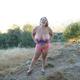 Девушка с нарисованными сердечками на сосках, решила устроить фотосессию на природе