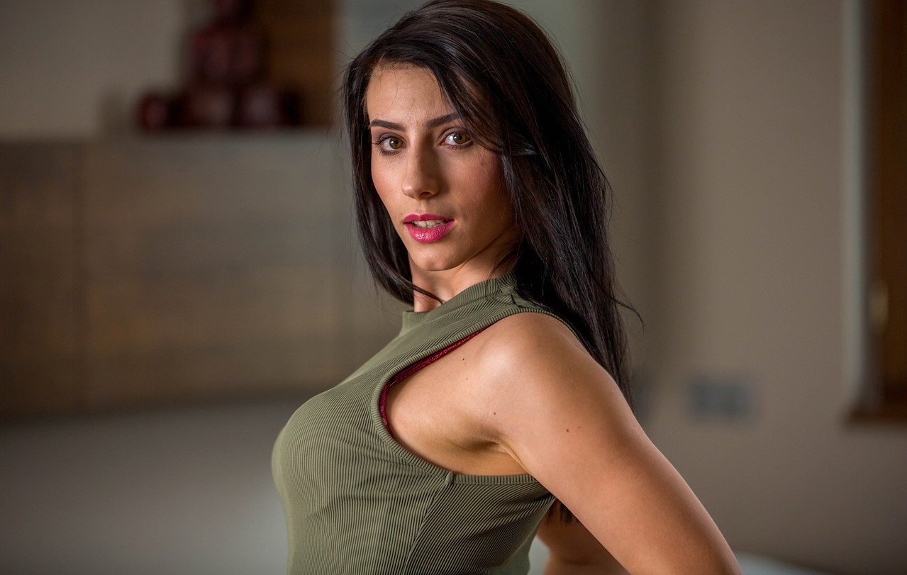 С удовольствием обнажается эта шлюховатая брюнетка Нелли демонстрируя нам свою стройную фигуру!