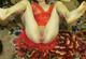 Женщина в красном сексуальном белье лежа на кроватке красиво раскинула ножки и показала свою киску.