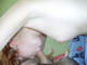 рыженькая лисичка усердно работает ротиком , ублажает член своего дружка