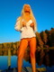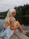 В студенную, зимнюю стужу, глаз радует очаровательная блондинка отдыхающаяя летом на природе.