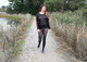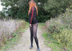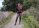 Шлюха в черных колготках на природе делает минет, а потом берет в анал