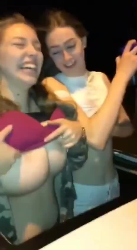 Пьяные шлюшки трясут сиськами из люка авто и сосутся изображая лесби
