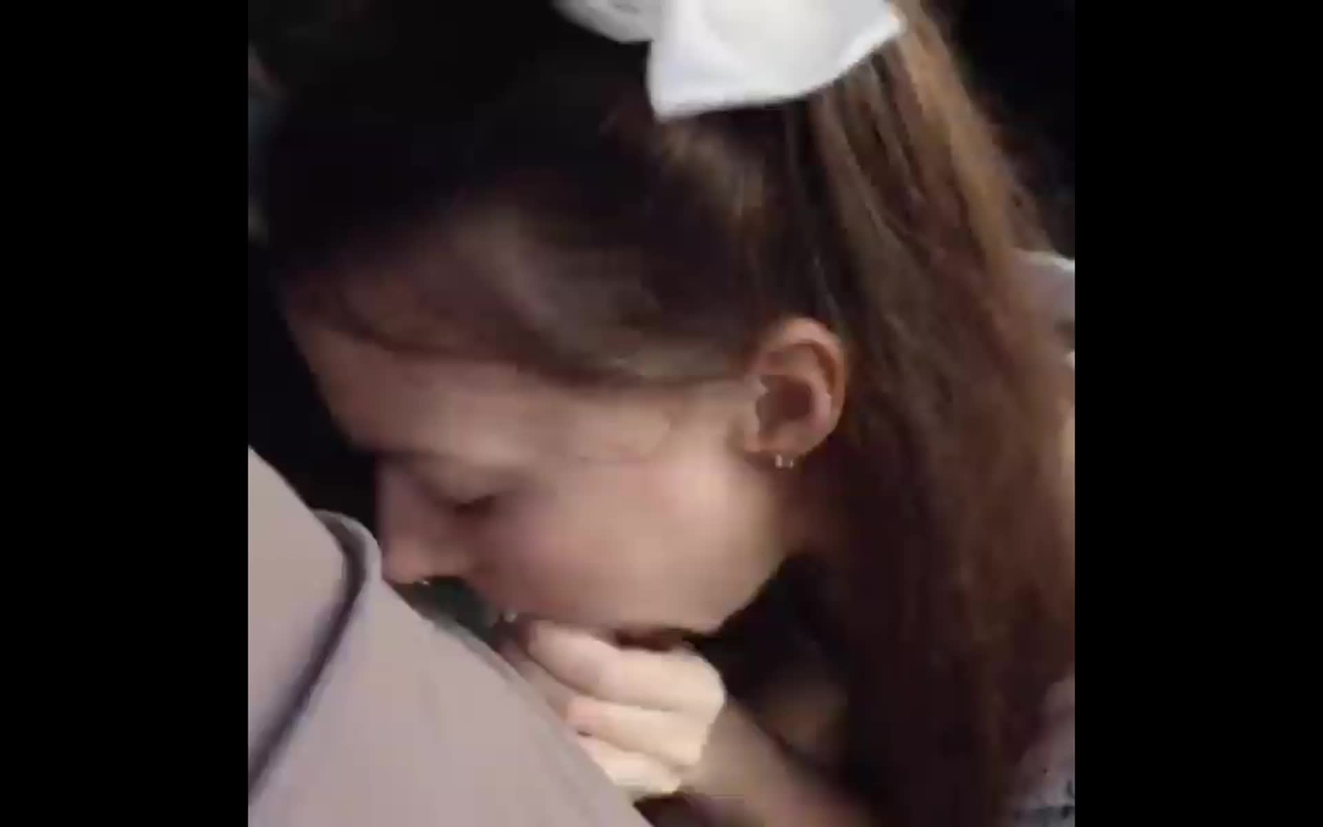 Клёво девка переодетая в школьное платье своему дружку член отсасывает!