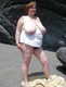 Плавает и загорает голой, но старается делать это, когда её не очень видно другим отдыхающим.