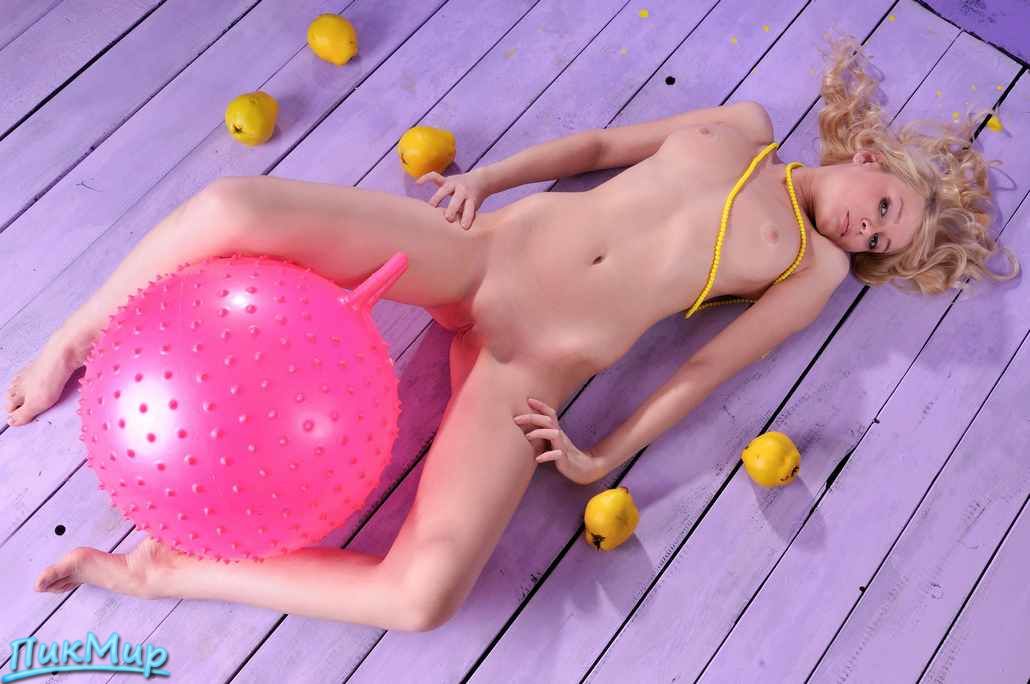Нравится этой очаровательной девочке позировать голой вместе с мячиком в пупырышках!