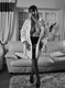 Зрелая дама показывает свои большие натуральные сиськи в чулках
