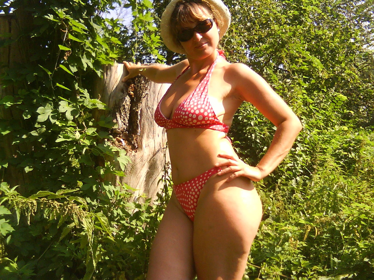 сочная дама засвечивает свои прелести и позирует