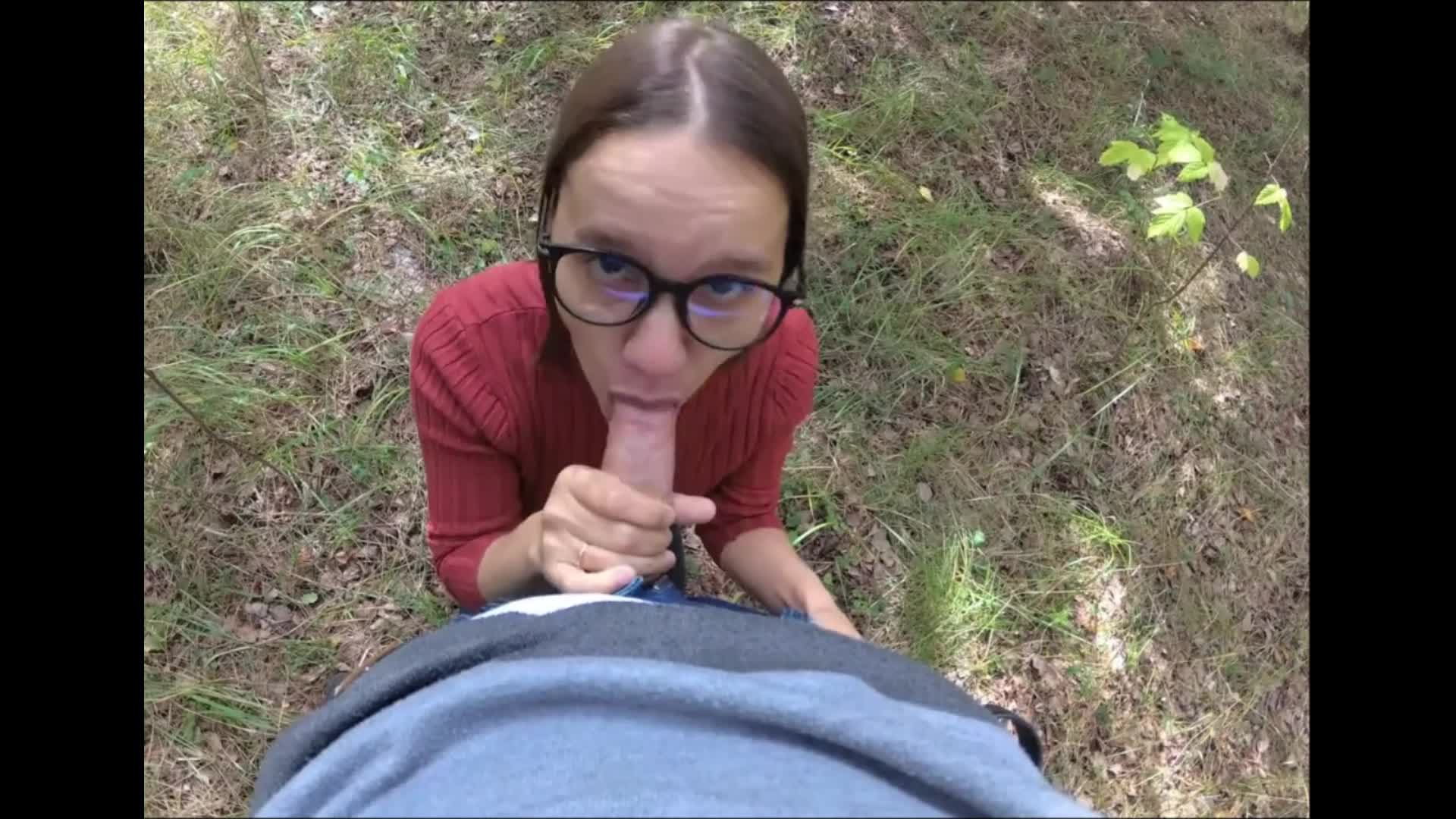 Зачётно потрудилась девушка в очках отсасывая член у парня на природе!