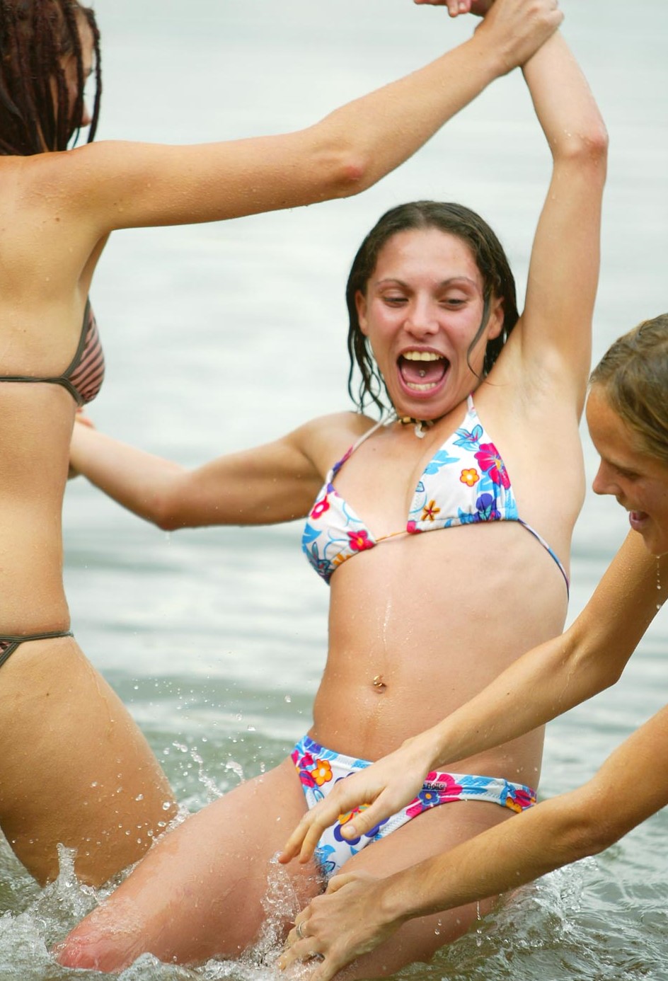 Сначала закапали подругу потом повеселились в воде и помылись в душе. В общем девчонки весело проводят время.