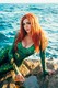 Красивая рыжая девушка позирует на берегу