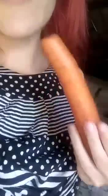 молодая девушка трахает свою киску морковкой наслаждаясь и кончая при этом