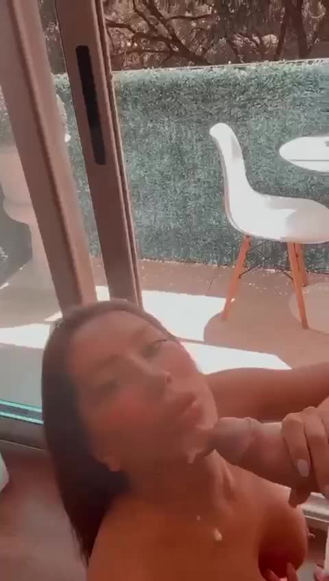 Губастая, пышногрудая девушка отсасывает и принимает в рот сперму