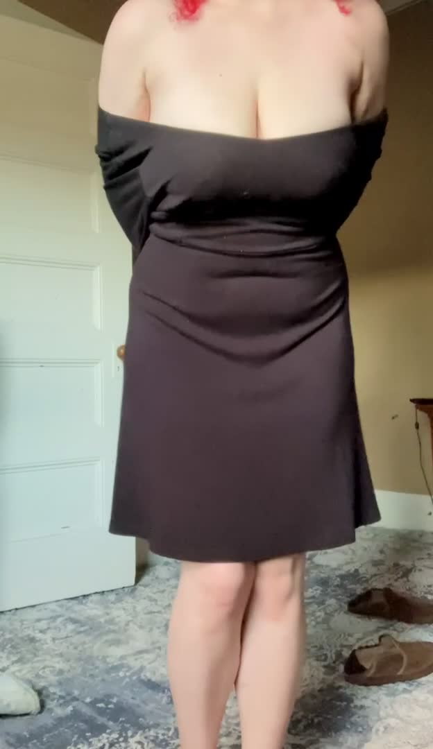 Нежно стягивает платье, оголила свою грудь! А потом даёт возможность на пизду свою взглянуть!