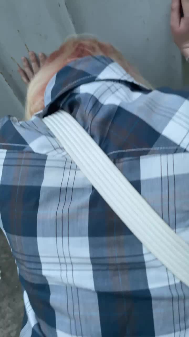 Дает себе в дырку возле гаража