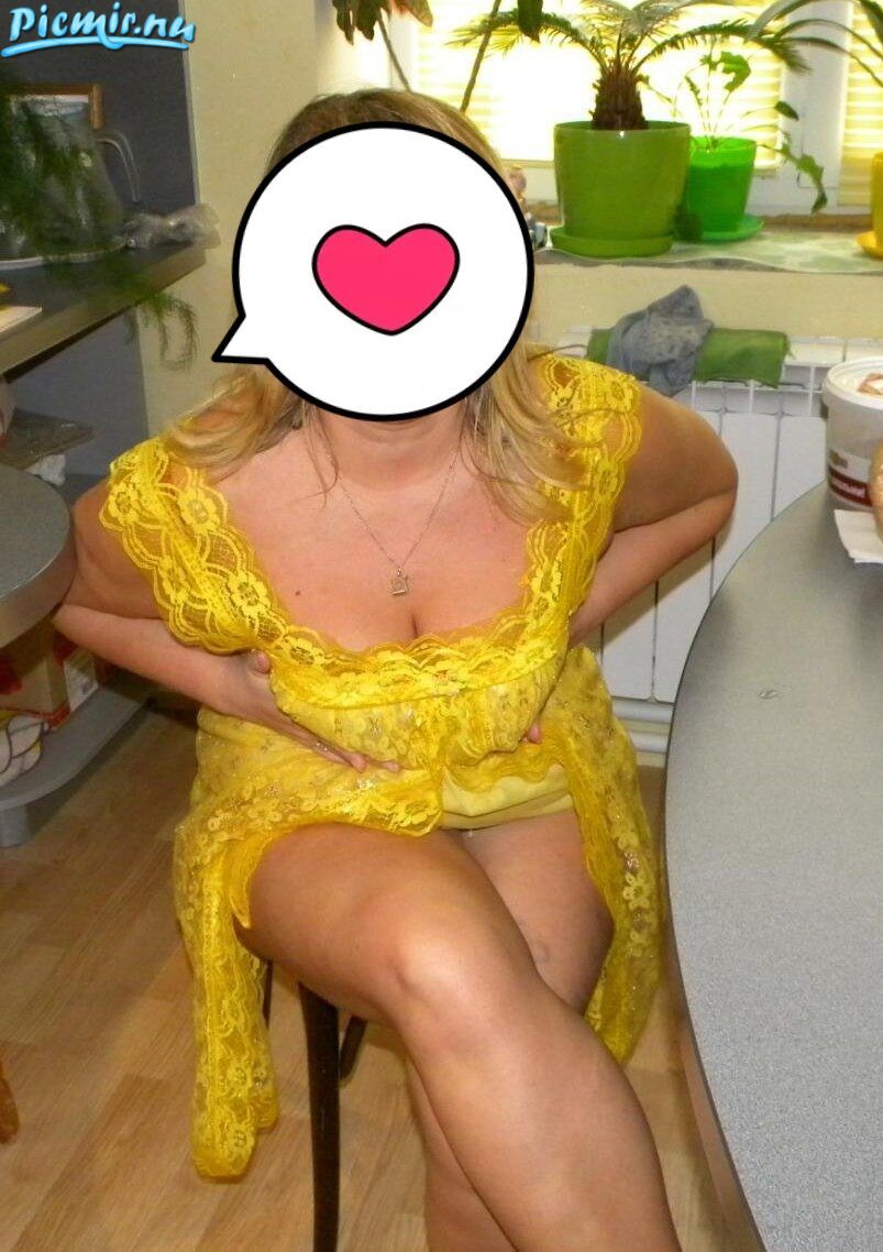 Дама аппетитной выглядит в своём жёлтом пеньюаре без трусов!