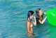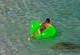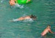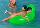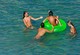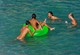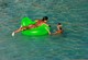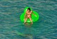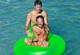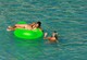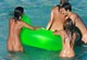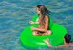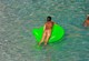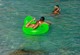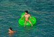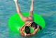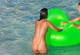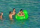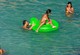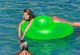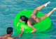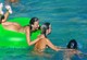 Компания молодых сперва просто устраивает в воде веселье, а потом еще берет для игр большой надувной круг и продолжает дурачиться с его помощью.